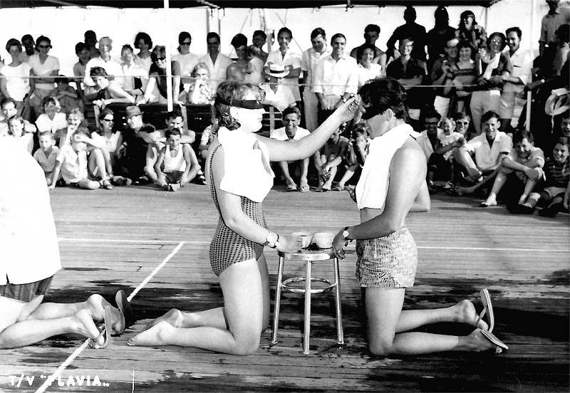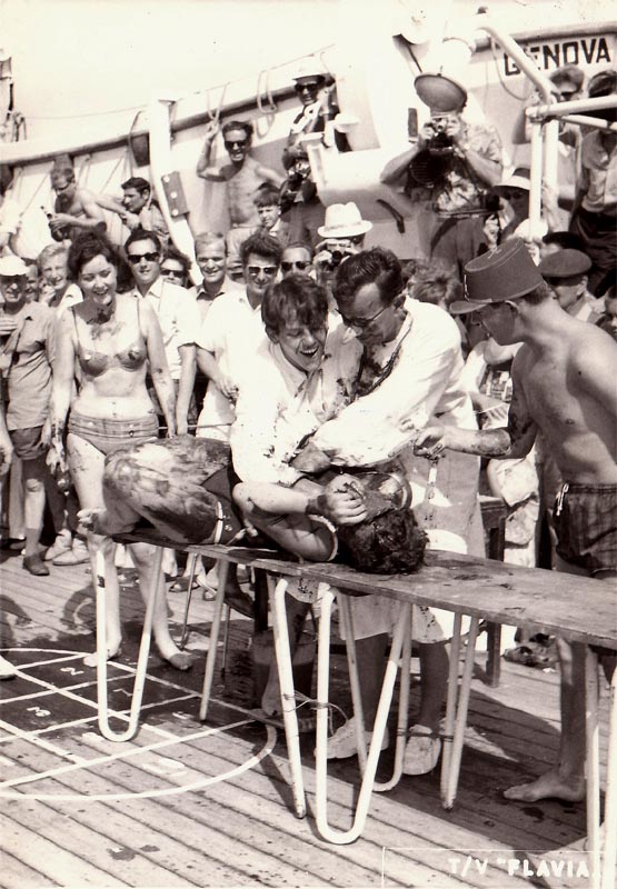 Having paraded in our fancy dress and the winners selected, with myself and Janie having won first prize, the Ball then commenced. Although not long after having been chosen as the winner, I had to return to my cabin as I was not too well. But, as usual, everyone danced the night away and they enjoyed the many games on offer during the evening, until it was time for the wonderful Midnight Buffet. There were so many wonderful days and nights onboard the excellent Italian liner Flavia and if she was around today, I would go on her again, for she was the perfect ship!