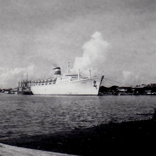 As we departed Germany, we encountered another wild gale across to Tilbury but I and a number of other young people sat aft by the pool on Lido Deck and could see the moon slide through the clouds, and at times it would be below the stern and next high above us and going from one side of the ship to the other, that is how much we were pitching as well as rolling. It was a whole lot of fun for us up there! But, sadly, many would not have agreed with us! As we arrived in Tilbury, I went ashore and went to the local market and watched one of those salesmen selling dinnerware, it was amazing how their technique worked. Their arms would be filled with plates and saucers, etc and they would be going at it so fast, and yes they were selling them like nothing on earth, for the prices were obviously very good! But, it was to cold for this Australian, and I went back to the ship.