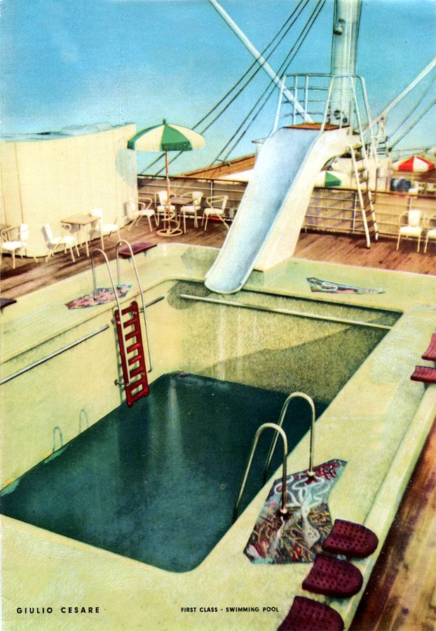 Design wise these ships were without doubt revolutionary and even though they were built as three class liners, amazingly each class had some of the finest passenger facilities to be found at sea of their days. In addition a very rare feature was that each class had their very own swimming pool. It was said that lounges and facilities in Tourist Class, which was the equivalent of third class, was as good as in Cabin Class (second class) on most Trans-Atlantic liners, if not as good as on some First Class ships! Some of the greatest architects and designers were used to create an ambience that was not just elegant, but besides being Italian, there were even touches of Scandinavian influences on board, and all provided an atmosphere that was a delight to the senses in every possible way! These ships were beyond beautiful and both ships offered the ultimate in Ocean going travel with the M.S. Augustus sailing with Italia line for twenty four years before she was sold to an Asian based Company.