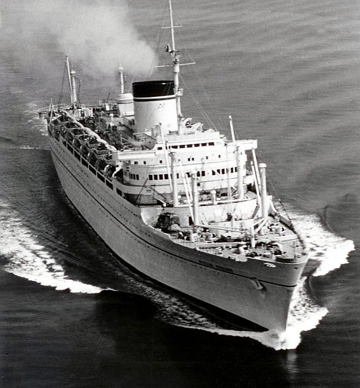 Although I originally commenced these pages almost exclusively regarding the M.S. Augustus, but also cover the Giulio Cesare, but very much in a lesser degree, as you can see I have now decided to completely rewrite and update the entire feature, which in reality came about due to the tragic sale of the M.S. Philippines, ex Augustus in September 2011, and her departure under tow bound for Alang, India, thus I felt the need to rewrite this feature as well as that of this superb ship the M.S. Giulio Cesare, for I believe that she should also have a greater role, even though she had a shorter life in comparison to her sister. Thus this page, I trust will rectify my previous short comings and I* trust that on this page you will discover that there will be a complete history as well as many fine interior photographs of this great liner. All these images are from my personal collection and I hope that you will enjoy the new feature more than ever - for there will be so much more for you to enjoy and to relive memories for all those who have had the privilege to sail on the M.S. Giulio Cesare or even just to have had the opportunity to see her in one of the many ports she visited. Enjoy!