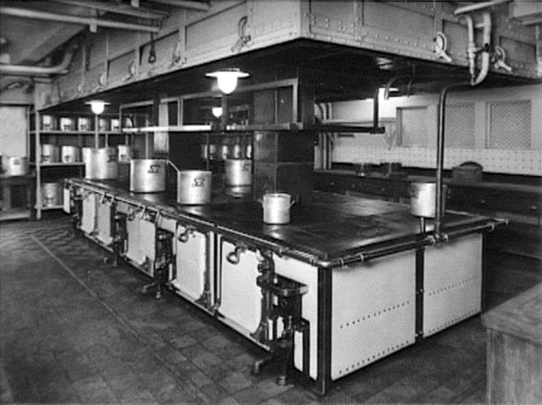Obviously the First and Second Class Dinning Rooms were separated by their respective Galley’s as well as some cool rooms and storage rooms, etc, to store the meats, fish, eggs and their vegetables and so forth. Although down below where the main storage spaces and items would be brought up as required.