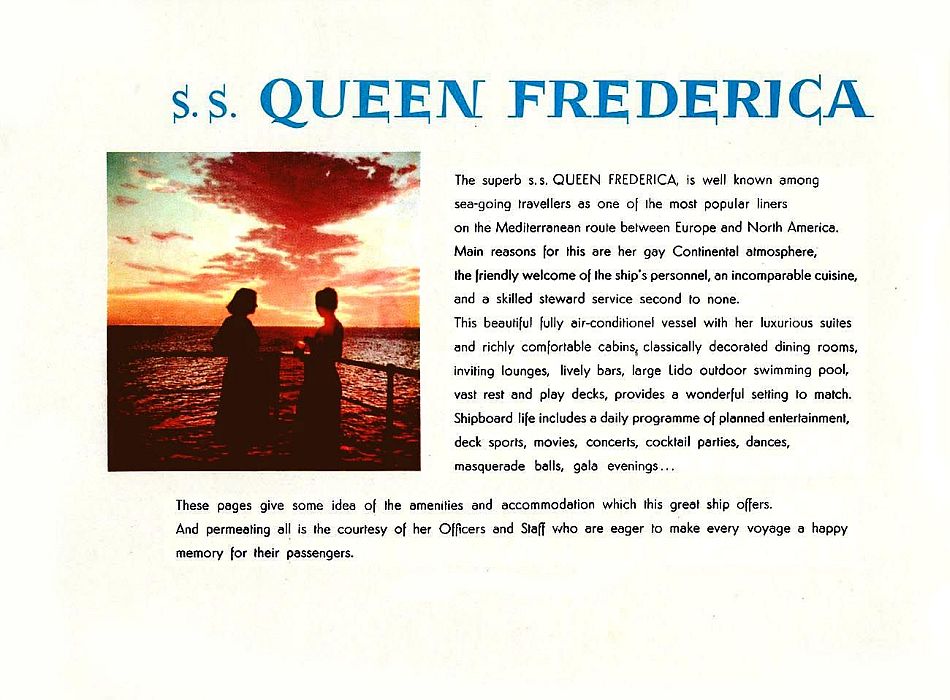 Part Three … SS Queen Frederica 1961 Brochure.
