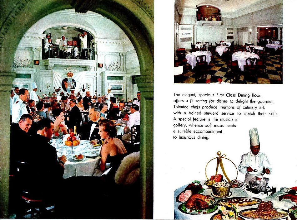 Upon completion, there was one big change, being that she had finally dropped her past three classes and she was now a magnificent two class liner accommodating; 174 First Class and 1,005 Tourist Class passengers. Both classes offered luxurious public venues and accommodations for both classes! She was now officially registered as being 21,239 GRT (Gross Registered Tons).