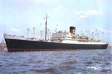 earlier two funnelled liner, which was torpedoed and sunk in 1940. Unlike the