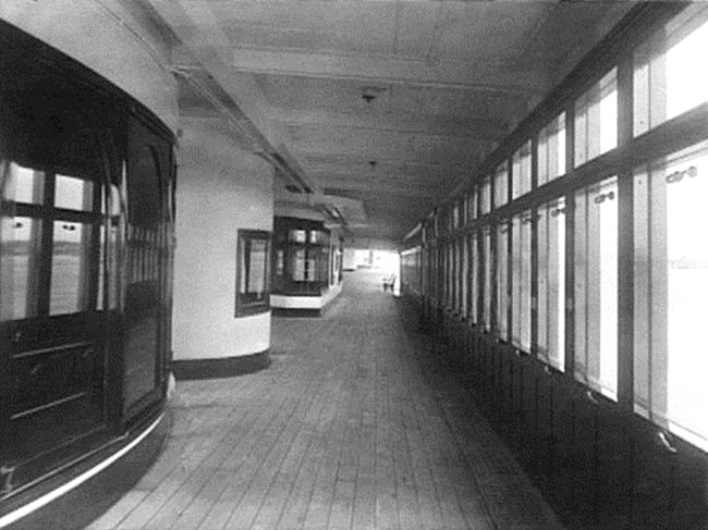 The glass enclosed section of the Promenade Deck, this is the portside looking aft