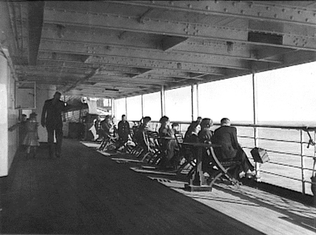 Passengers enjoying the ocean life and fresh air on Promenade Deck - portside aft
