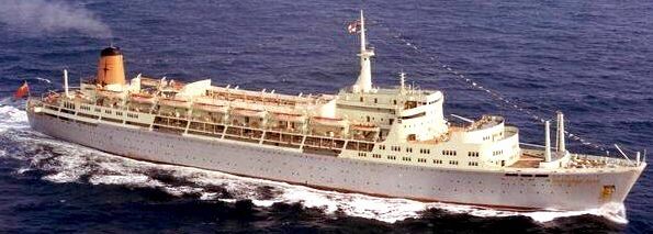 Above: Southern Cross seen laid up on the River Fal, with two Cunard liners at