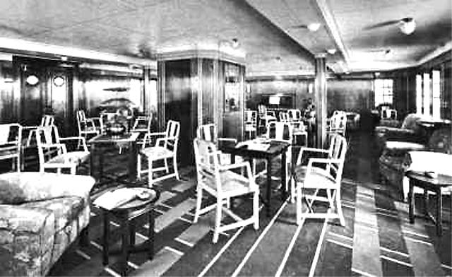 The cosy port side corridor lounge looking forward into the semi open Dance Hall, there is another on the starboard side